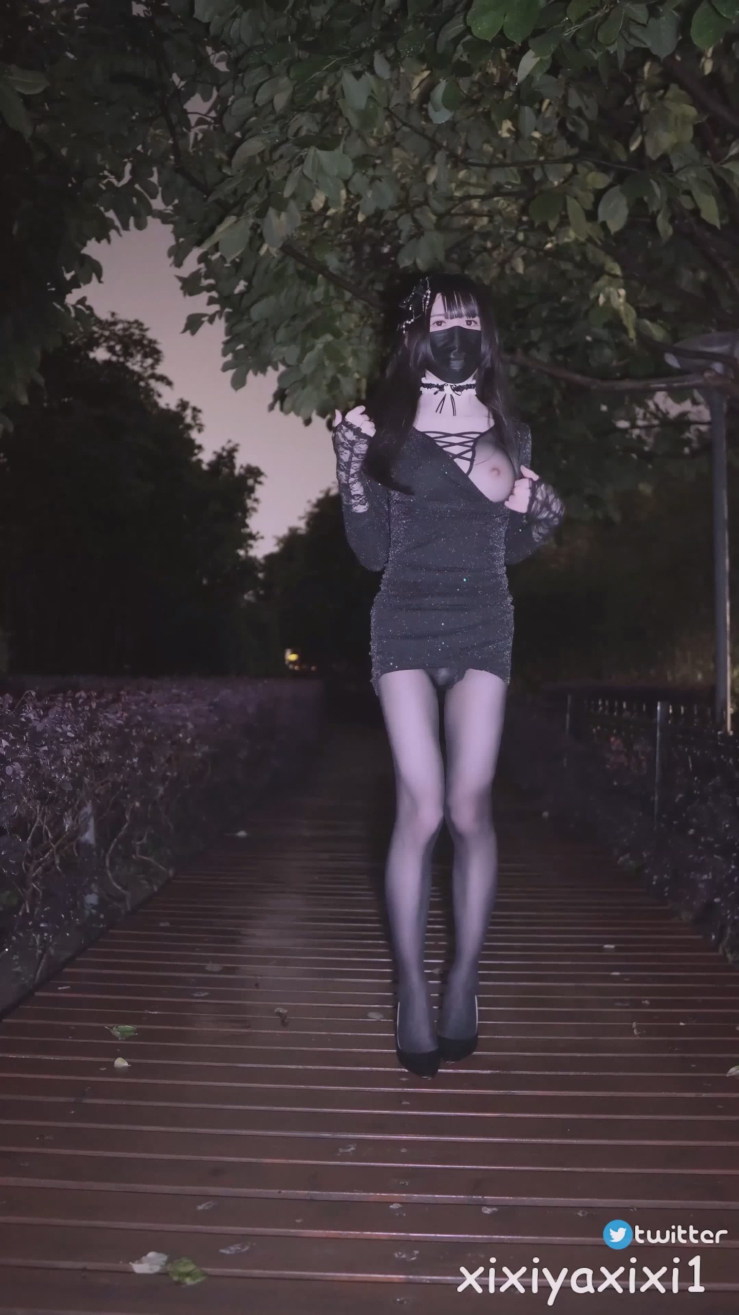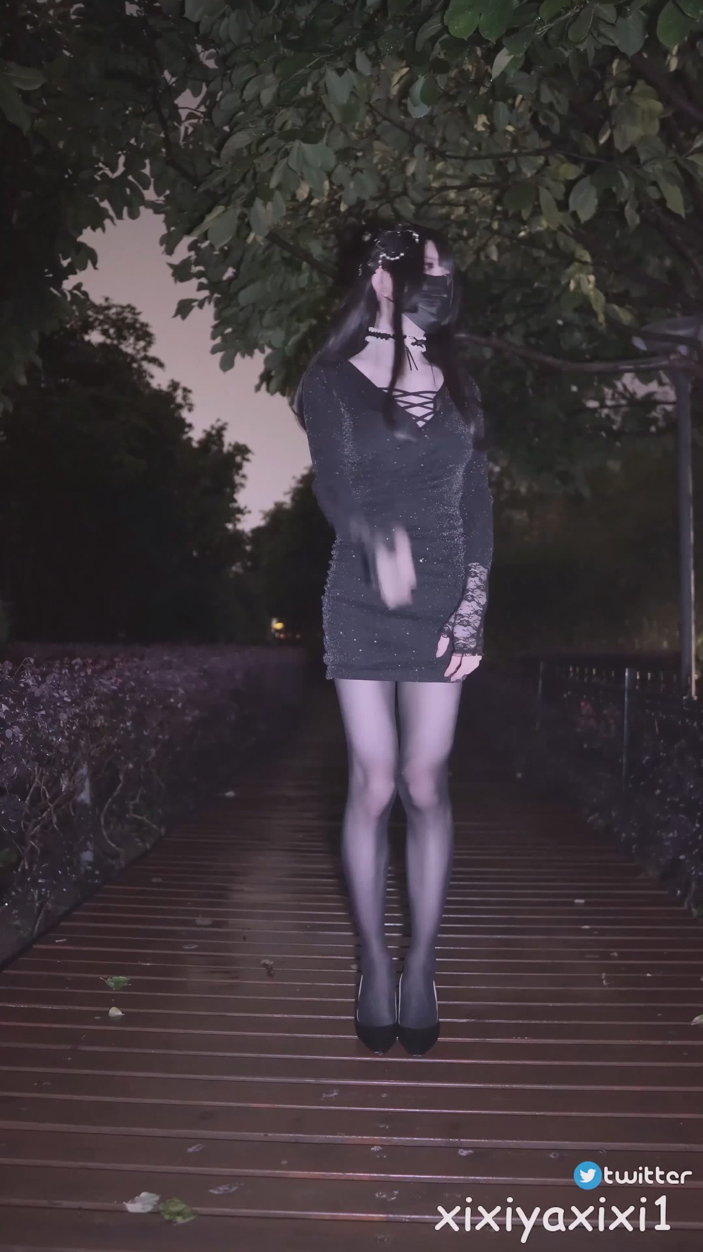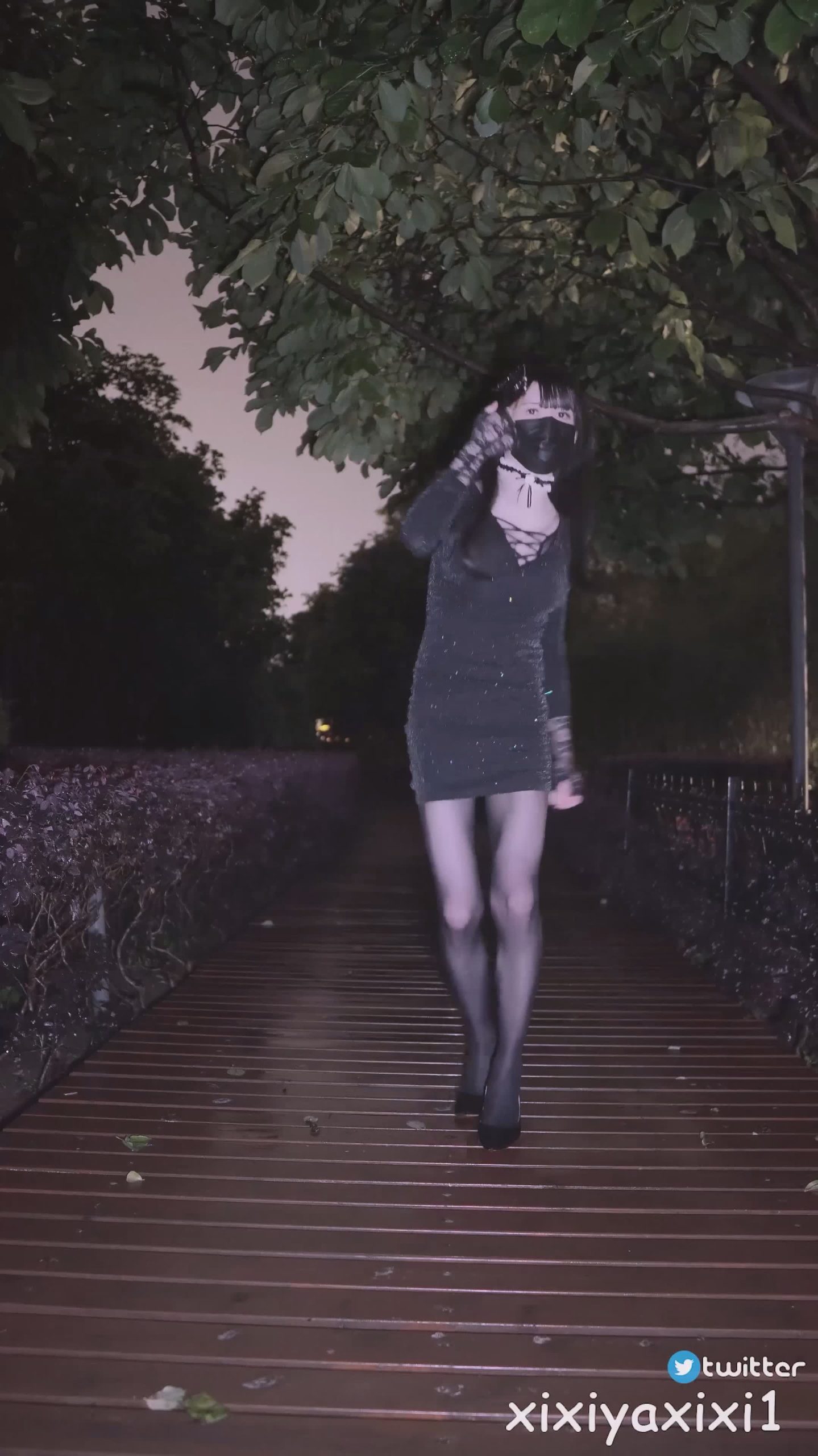 曦曦呀曦曦(@xixiyaxixi) – X008-[4K]-珠光连衣裙 公园栈道
