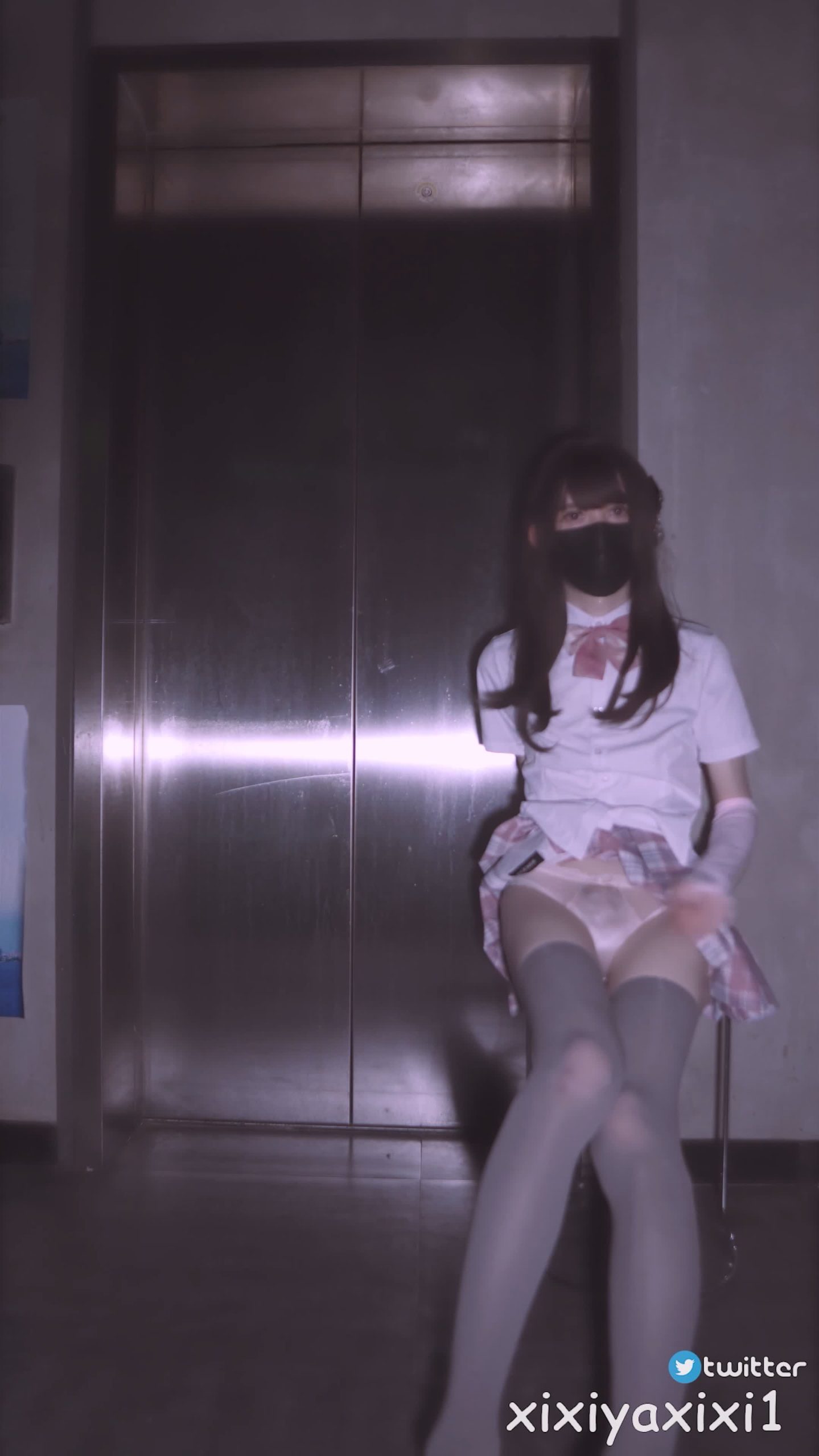 曦曦呀曦曦(@xixiyaxixi) – X009-[4K]-粉色JK格裙 电梯口